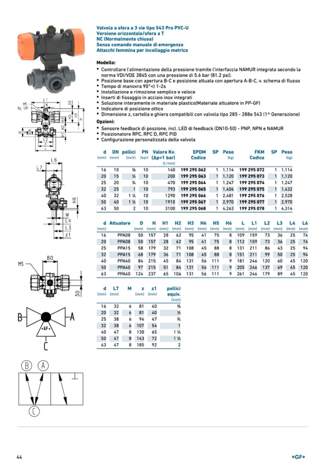 Valvola a sfera a 3 vie tipo 543 Pro PVC-U
