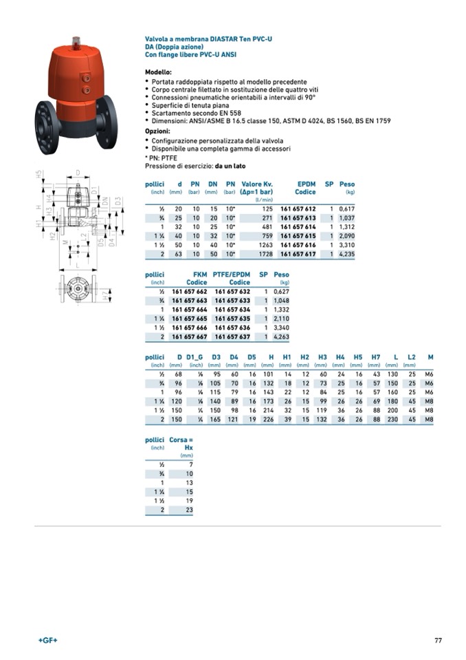 Dimensioni: ANSI/ASME B 16.5 classe 150, ASTM D 4024, BS 1560, BS EN 1759