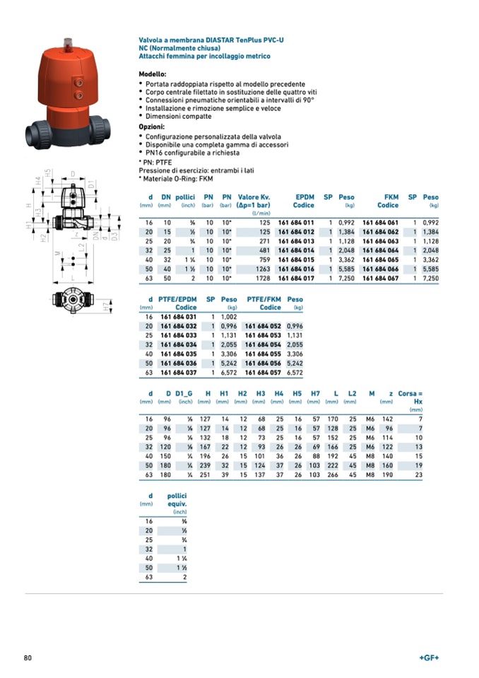 Valvola a membrana DIASTAR TenPlus PVC-U