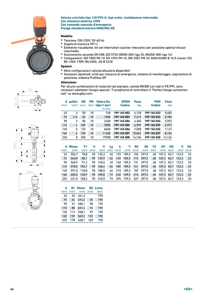 Valvola a farfalla tipo 145 PVC-U, tipo wafer, installazione intermedia