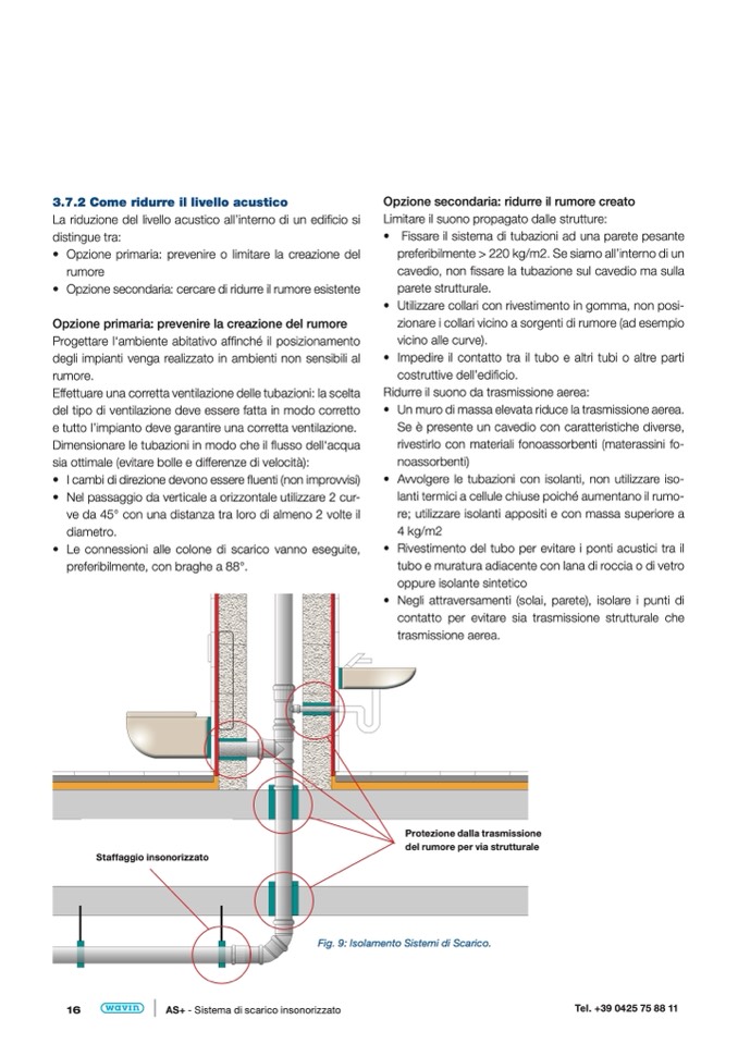 • Rivestimento del tubo per evitare i ponti acustici tra il