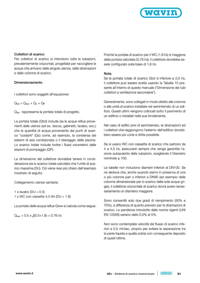 Poiché la portata di scarico per il WC (1,8 l/s) è maggiore