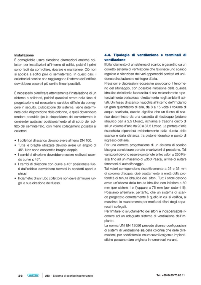 fondità di tenuta idraulica dei sifoni. Tutti i sifoni devono