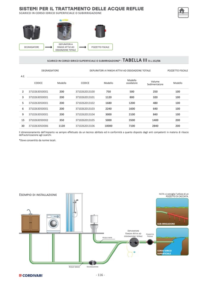 Il dimensionamento dell’impianto va sempre effettuato da un tecnico abilitato ed in conformità a quanto disposto dagli enti competenti in materia di rilascio