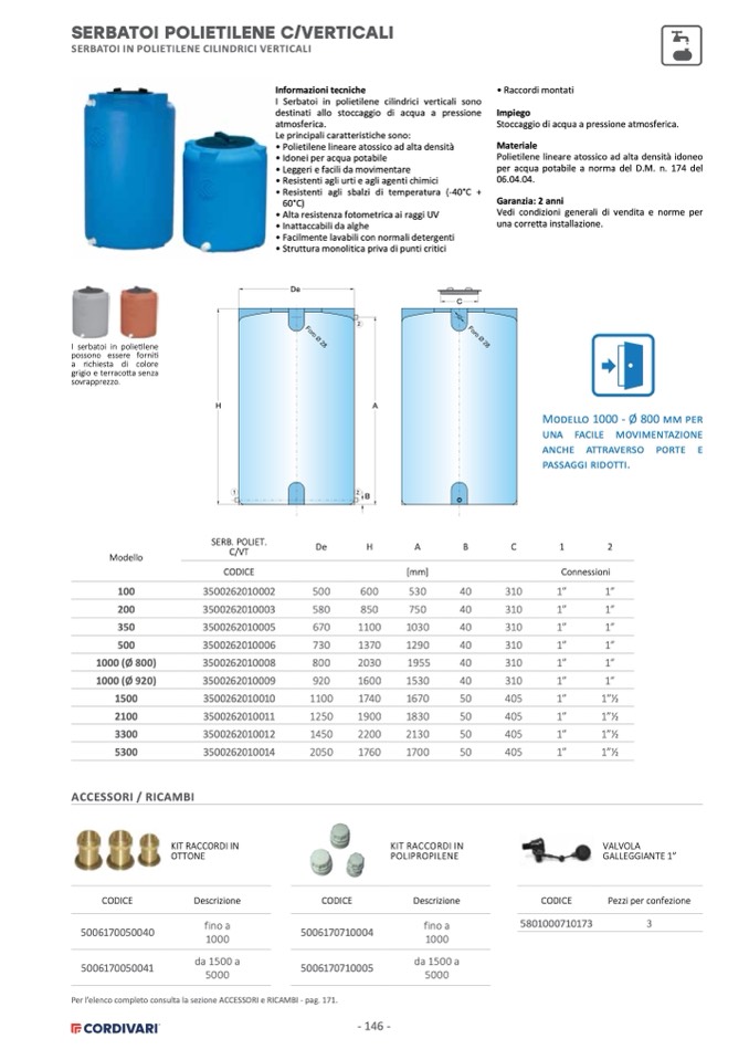 Per l’elenco completo consulta la sezione ACCESSORI e RICAMBI - pag. 171.