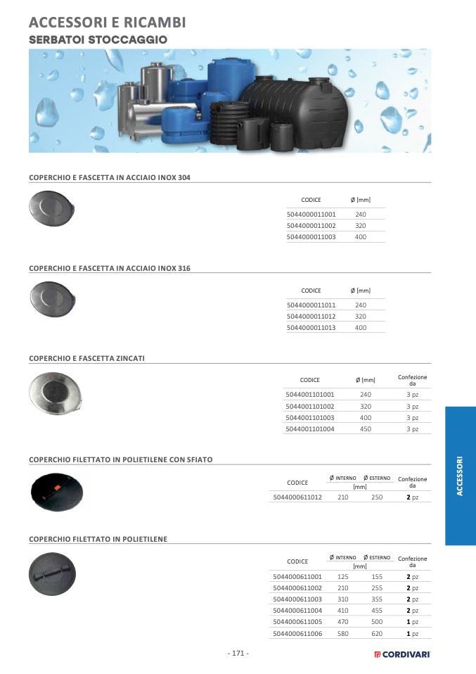 COPERCHIO E FASCETTA IN ACCIAIO INOX 304