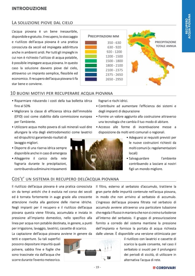 piovana questa viene filtrata, accumulata e inviata in
