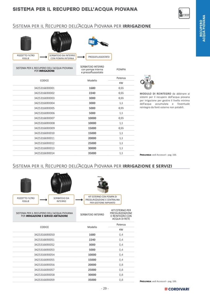SISTEMA PER IL RECUPERO DELL’ACQUA PIOVANA