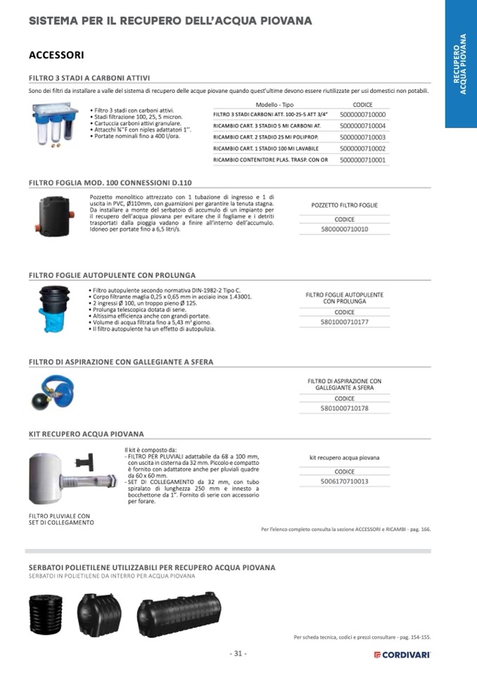 Sono dei filtri da installare a valle del sistema di recupero delle acque piovane quando quest'ultime devono essere riutilizzate per usi domestici non potabili.
