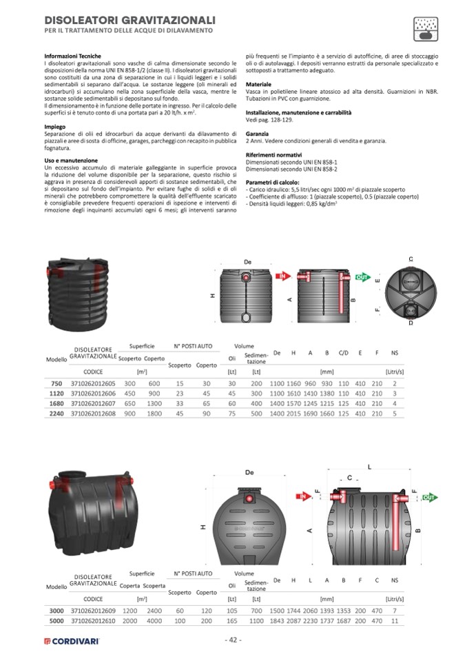 disposizioni della norma UNI EN 858-1/2 (classe II). I disoleatori gravitazionali