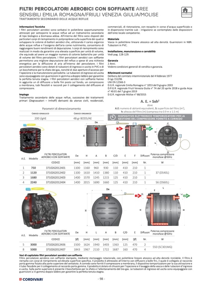 Voci di capitolato filtri percolatori aerobici con soffiante