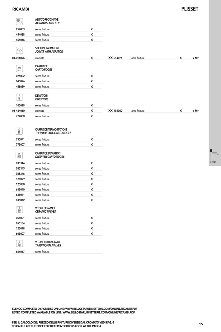 ELENCO COMPLETO DISPONIBILE ON LINE: WWW.BELLOSTARUBINETTERIE.COM/ONLINE/RICAMBI.PDF