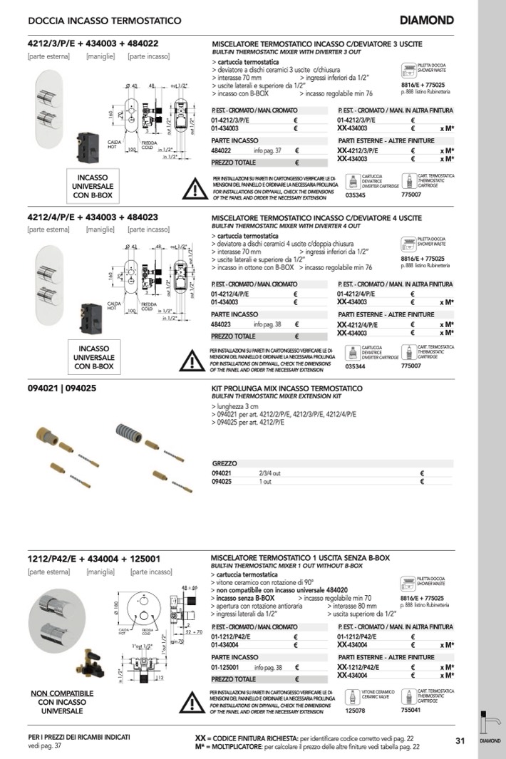 BUILT-IN THERMOSTATIC MIXER WITH DIVERTER 4 OUT