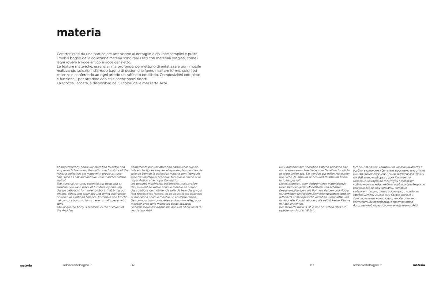 salle de bain de la collection Materia sont fabriqués