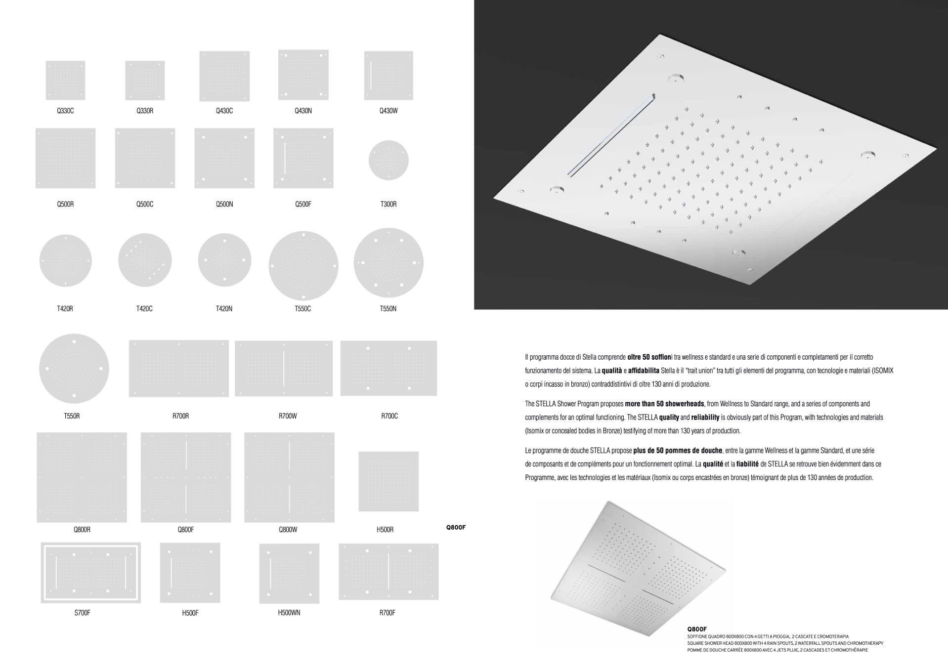 The STELLA Shower Program proposes more than 50 showerheads, from Wellness to Standard range, and a series of components and