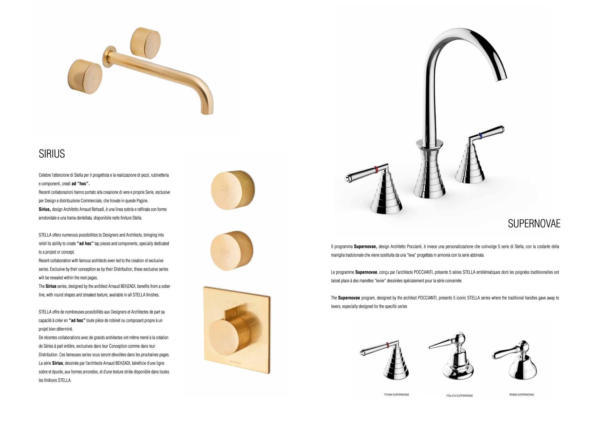 The Supernovae program, designed by the architect POCCIANTI, presents 5 iconic STELLA series where the traditional handles gave away to