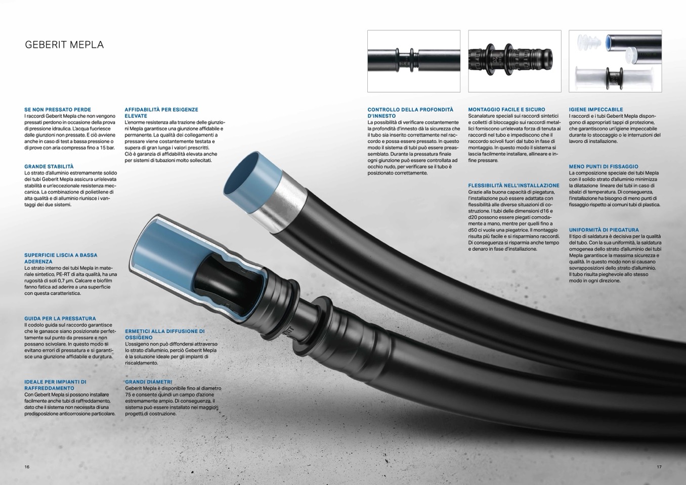 lo strato d’alluminio, perciò Geberit Mepla