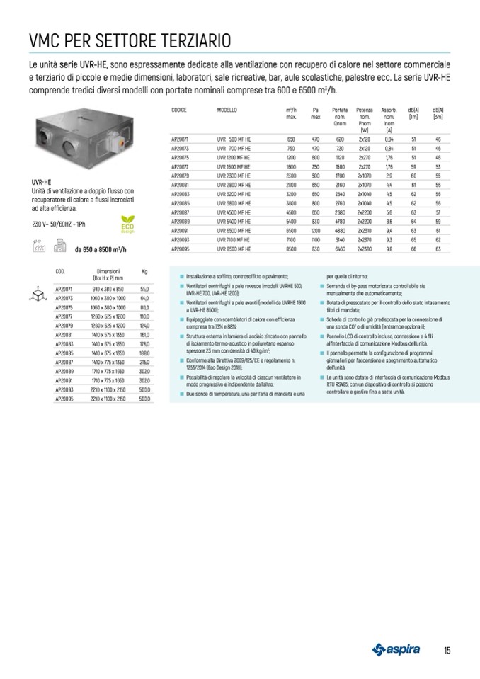 Ventilatori centrifughi a pale avanti (modelli da UVRHE 1600