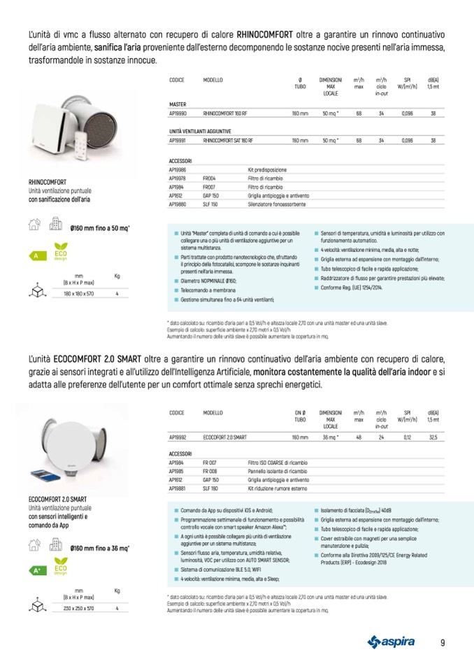 * dato calcolato su: ricambio d'aria pari a 0,5 Vol/h e altezza locale 2,70 con una unità master ed una unità slave.