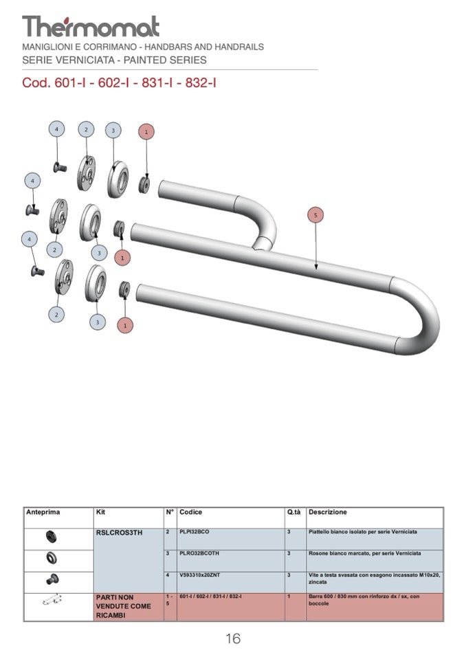 1 Barra 600 / 830 mm con rinforzo dx / sx, con