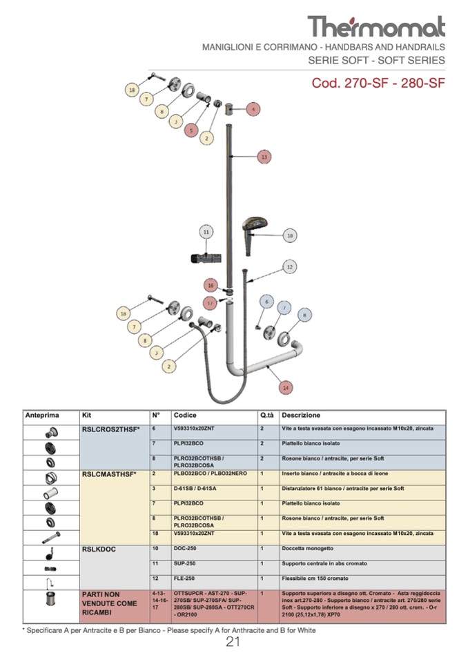 *Specificare A per Antracite o B per Bianco