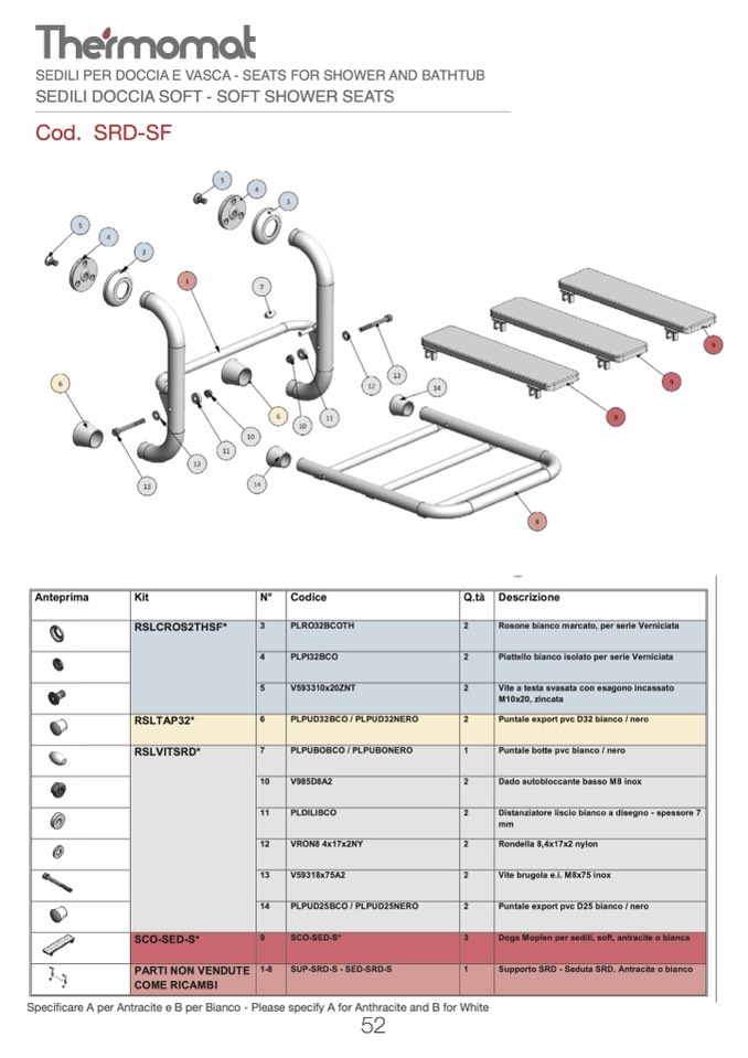 Specificare A per Antracite e B per Bianco - Please specify A for Anthracite and B for White