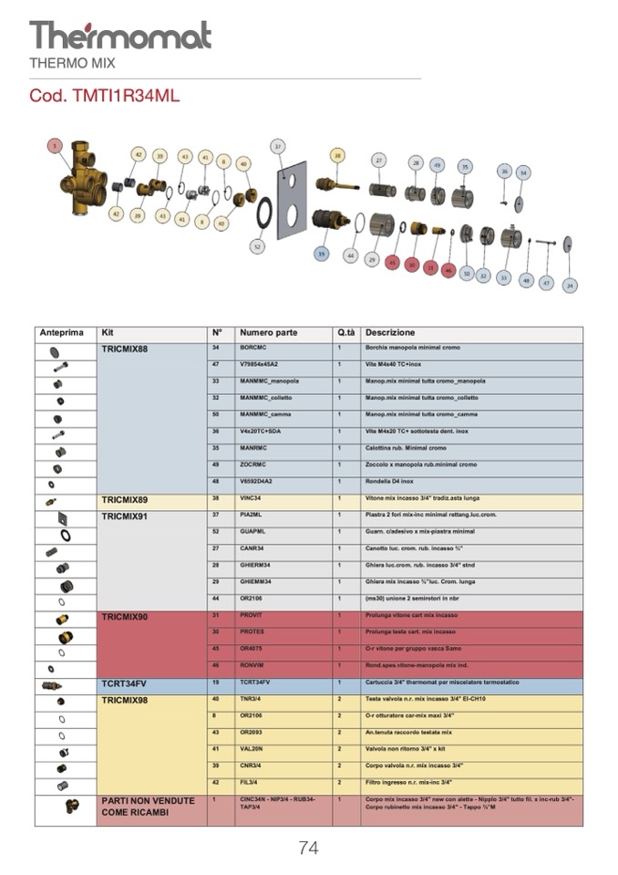 Cartuccia 3/4" thermomat per miscelatore termostatico