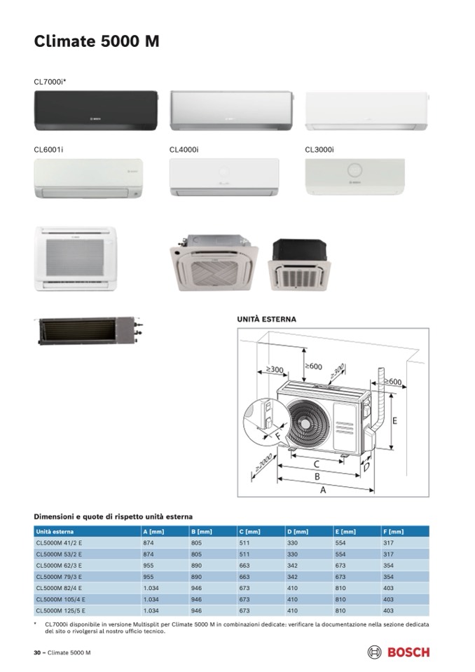* CL7000i disponibile in versione Multisplit per Climate 5000 M in combinazioni dedicate: verificare la docum