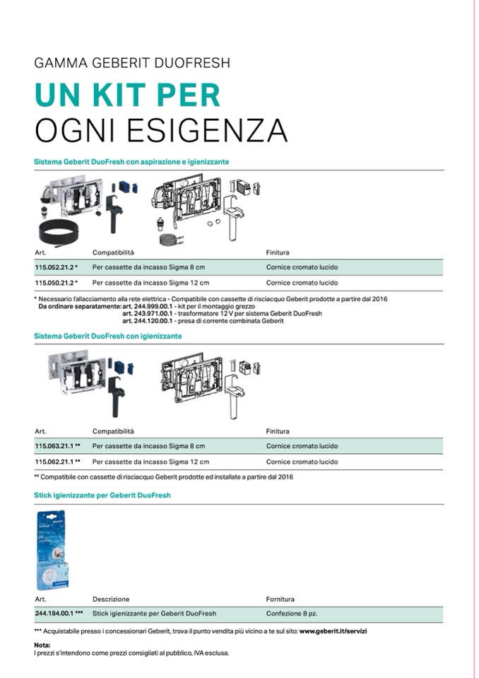 *** Acquistabile presso i concessionari Geberit, trova il punto vendita più vicino a te sul sito: www.geberit.it/servizi