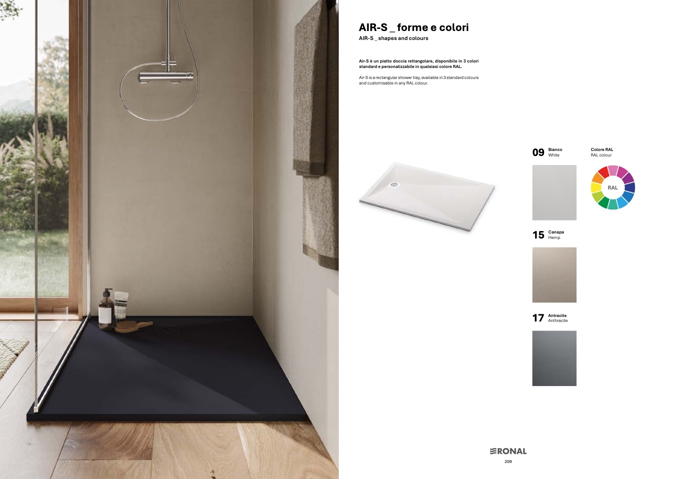 Air-S is a rectangular shower tray, available in 3 standard colours