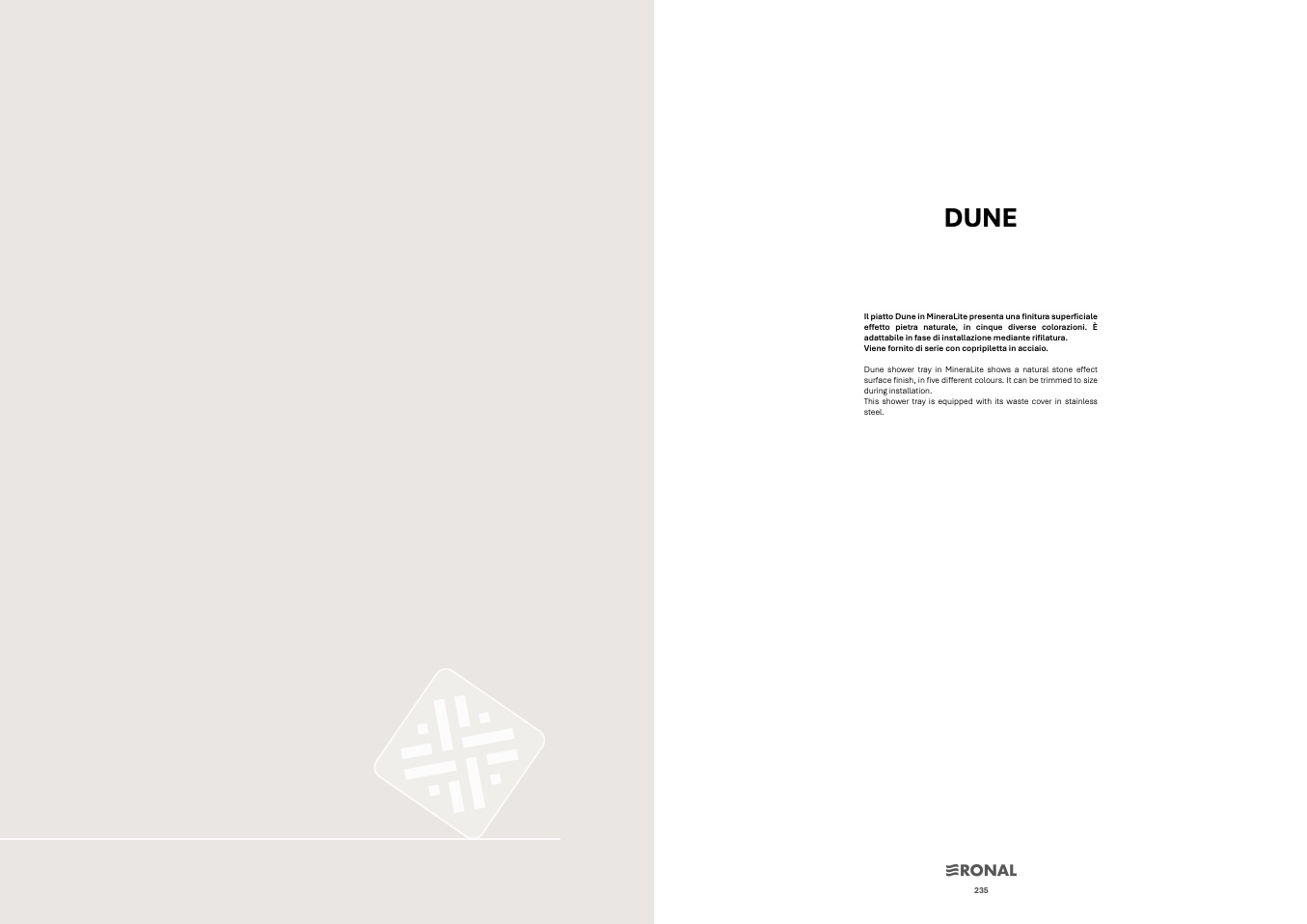 Il piatto Dune in MineraLite presenta una finitura superficiale