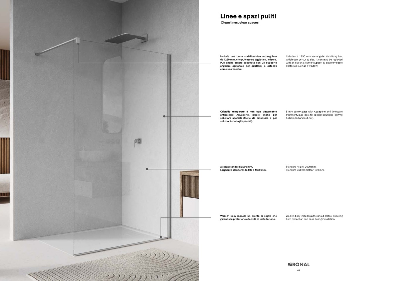 8 mm safety glass with Aquaperle anti-limescale