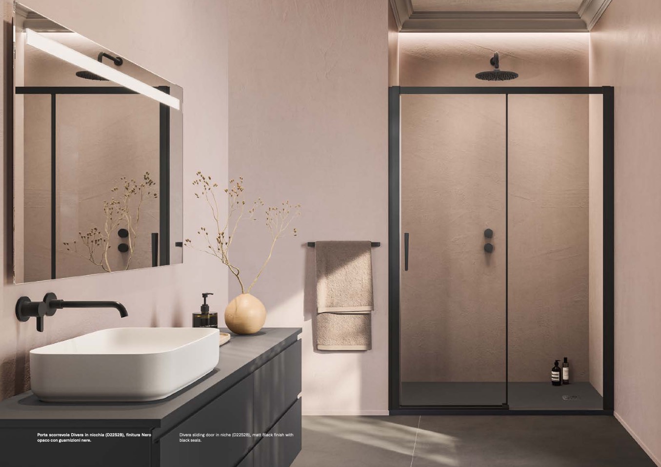 Divera sliding door in niche (D22S2B), matt Black