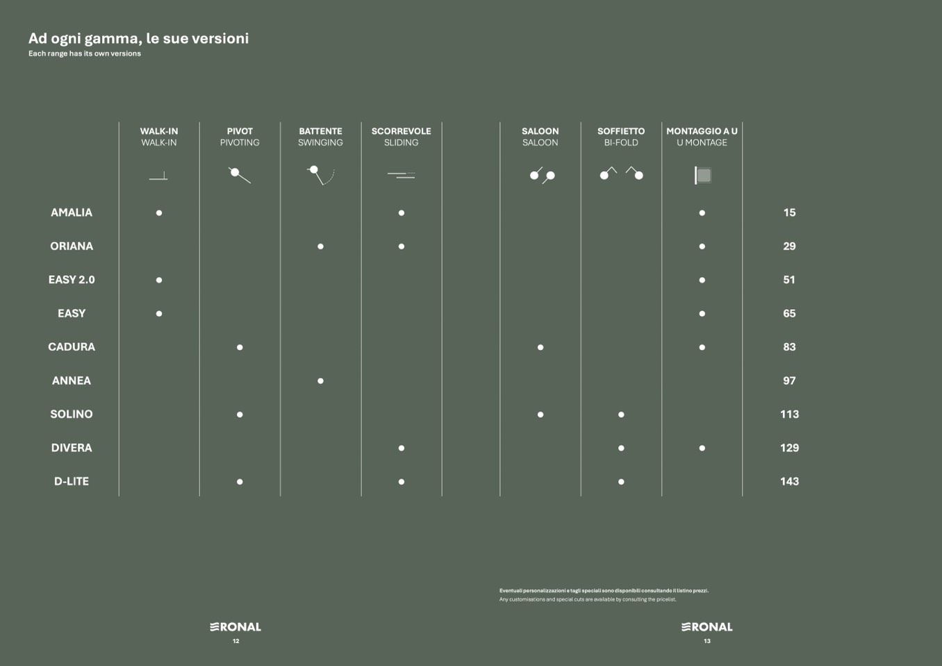Eventuali personalizzazioni e tagli speciali sono disponibili consultando il listino prezzi