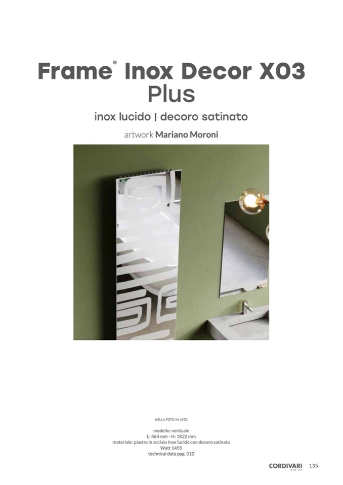 materiale: piastra in acciaio inox lucido con decoro satinato