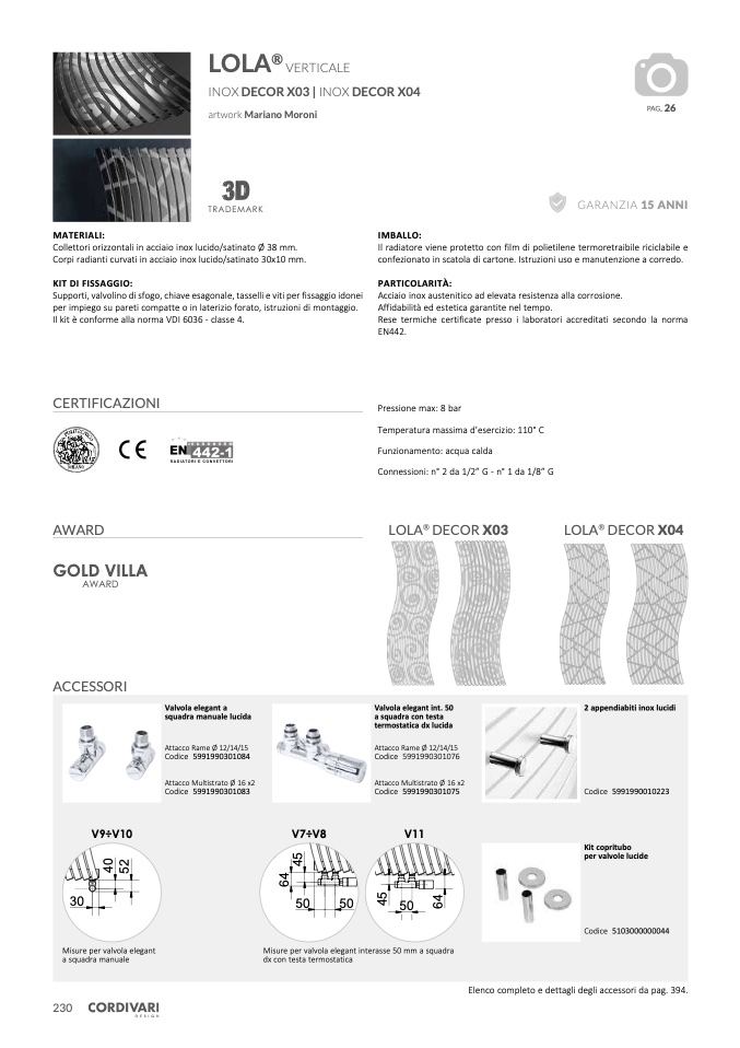 Connessioni: n° 2 da 1/2” G - n° 1 da 1/8” G
