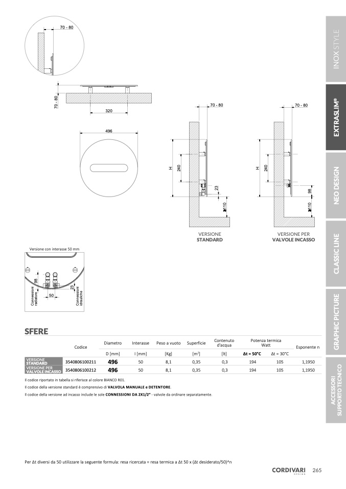 Per Δt diversi da 50 utilizzare la seguente formula: resa ricercata = resa termica a Δt 50 x (Δt desiderato/50)^n