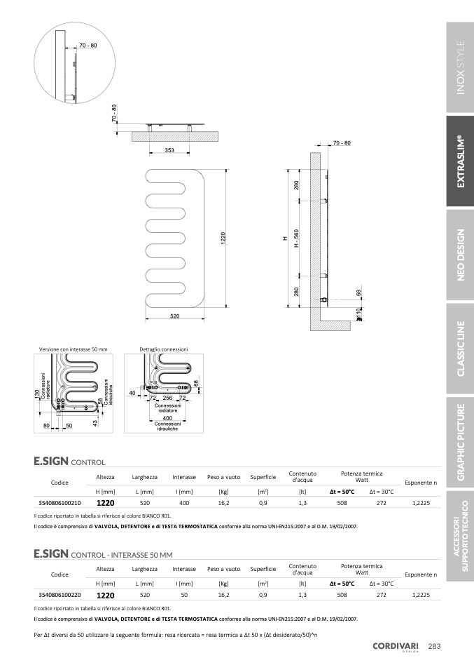 Per Δt diversi da 50 utilizzare la seguente formula: resa ricercata = resa termica a Δt 50 x (Δt desiderato/50)^n