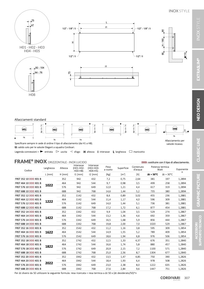 Per Δt diversi da 50 utilizzare la seguente formula: resa ricercata = resa termica a Δt 50 x (Δt desiderato/50)^n