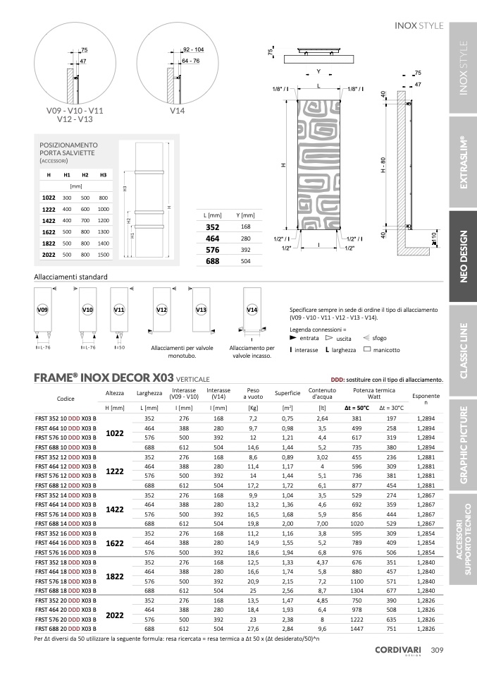 Per Δt diversi da 50 utilizzare la seguente formula: resa ricercata = resa termica a Δt 50 x (Δt desiderato/50)^n