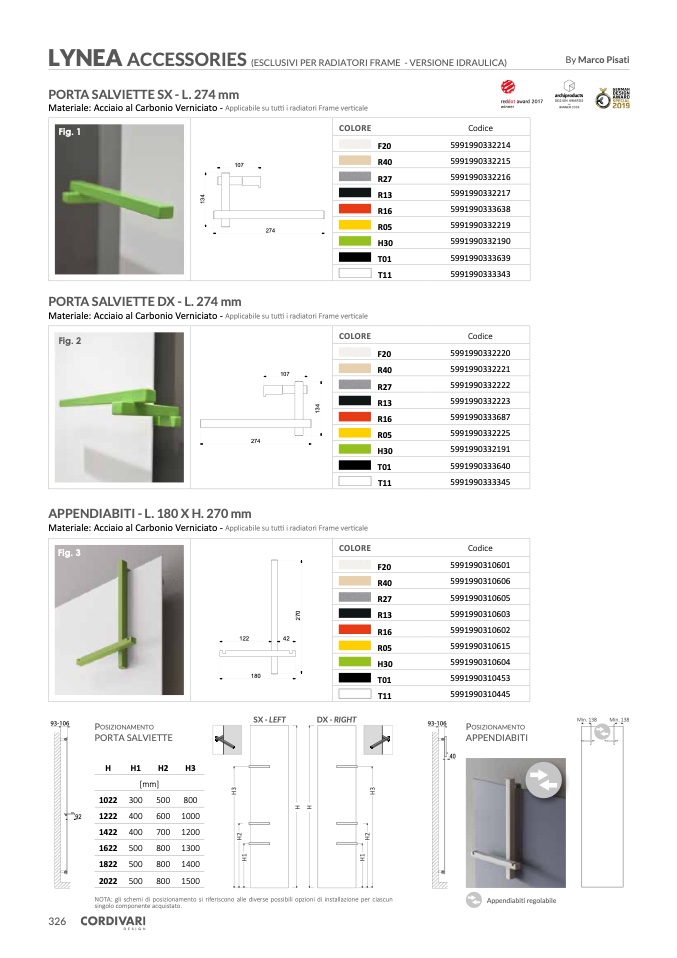 NOTA: gli schemi di posizionamento si riferiscono alle diverse possibili opzioni di installazione per ciascun