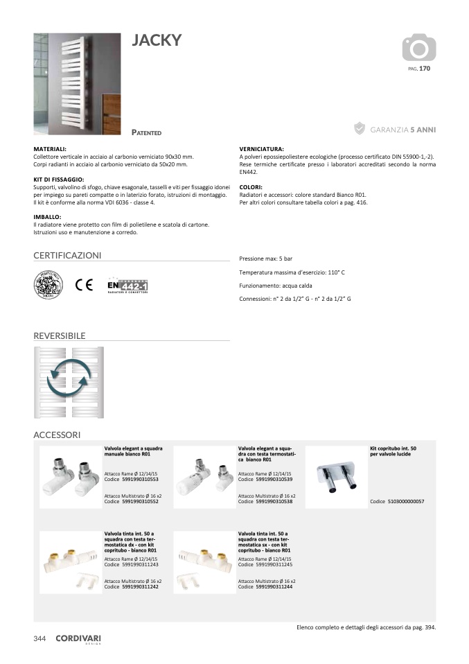 Connessioni: n° 2 da 1/2” G - n° 2 da 1/2” G