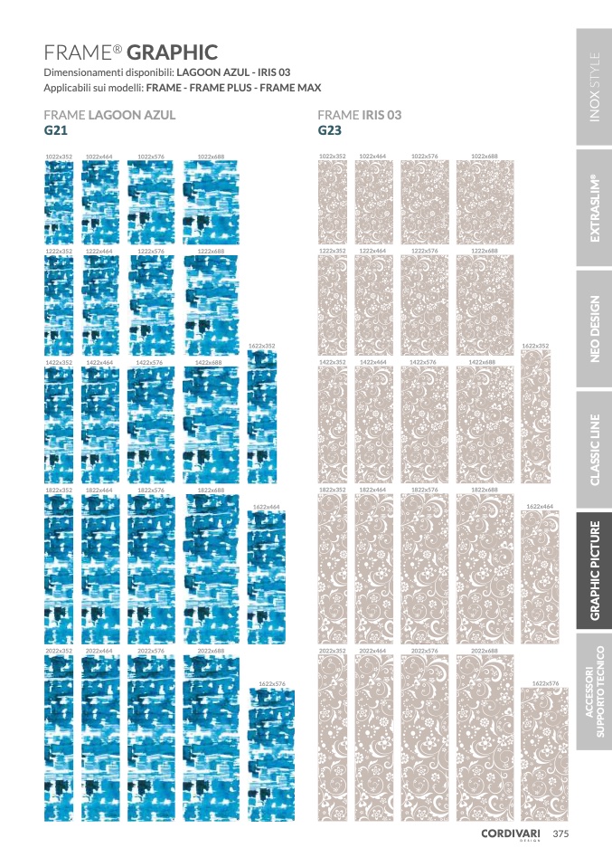 Dimensionamenti disponibili: LAGOON AZUL - IRIS 03