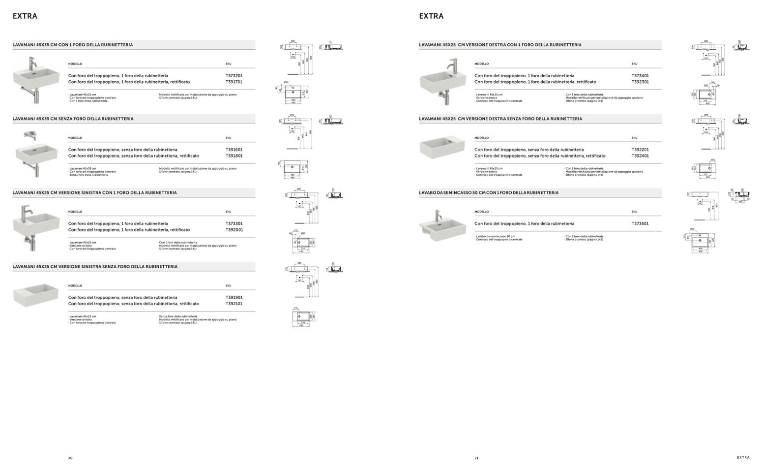 LAVAMANI 45X25 CM VERSIONE SINISTRA CON 1 FORO DELLA RUBINETTERIA