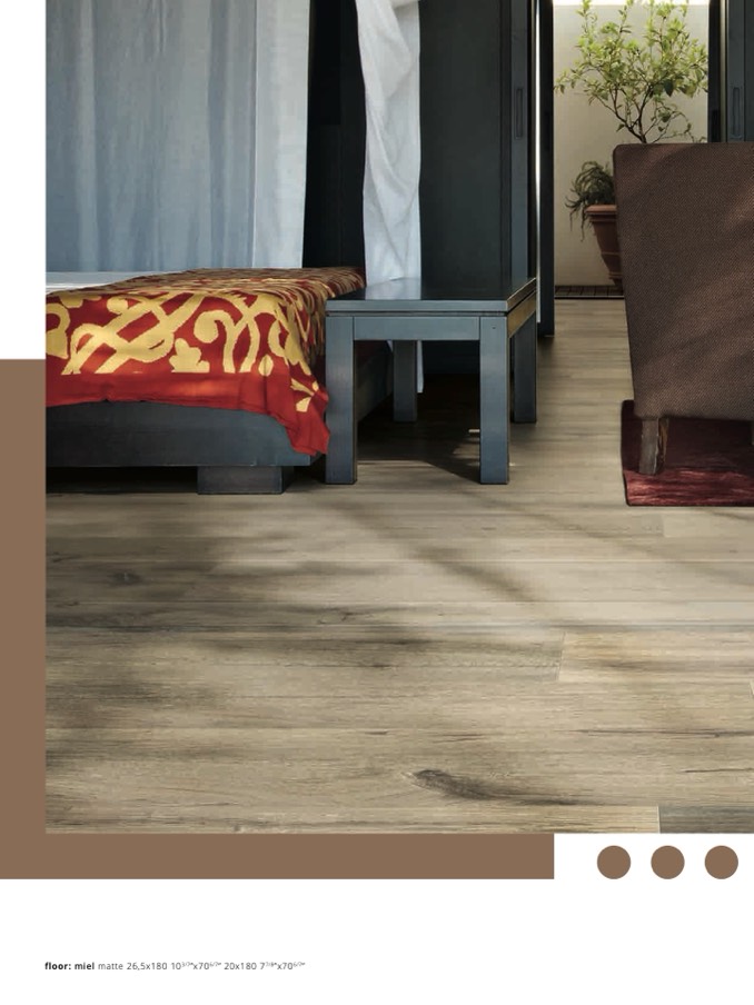 floor: miel matte 26,5x180 103/7”x706/7” 20x180 77/8”x706/7”