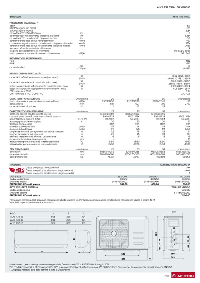 le condizioni nominali si riferiscono a 35°C / 27°C (esterno / interno) per il ra