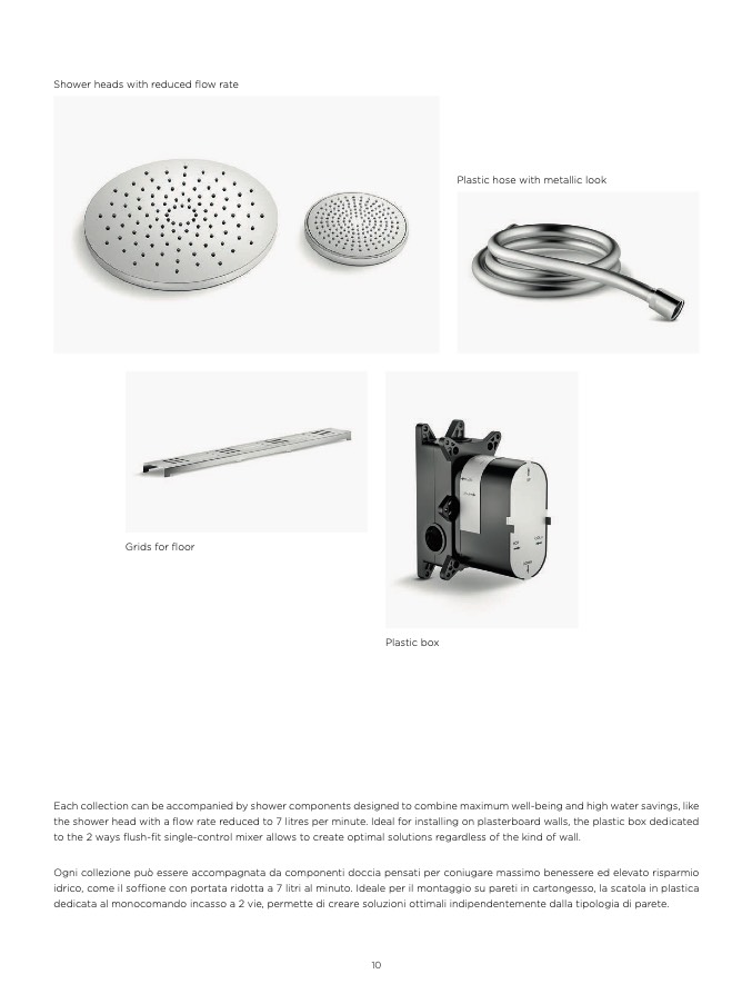 Each collection can be accompanied by shower components designed to combine maximum well-being and high water savings, like