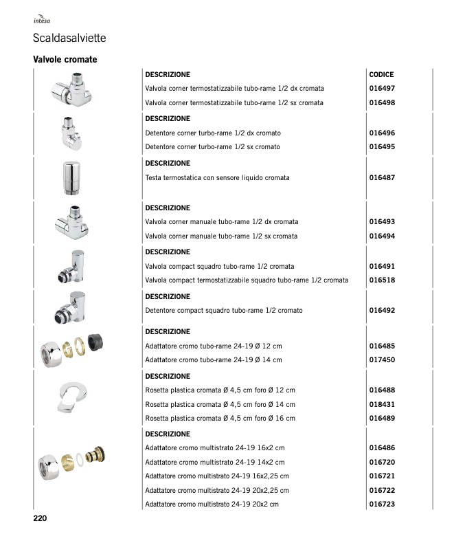 Valvola compact termostatizzabile squadro tubo-rame 1/2 cromata