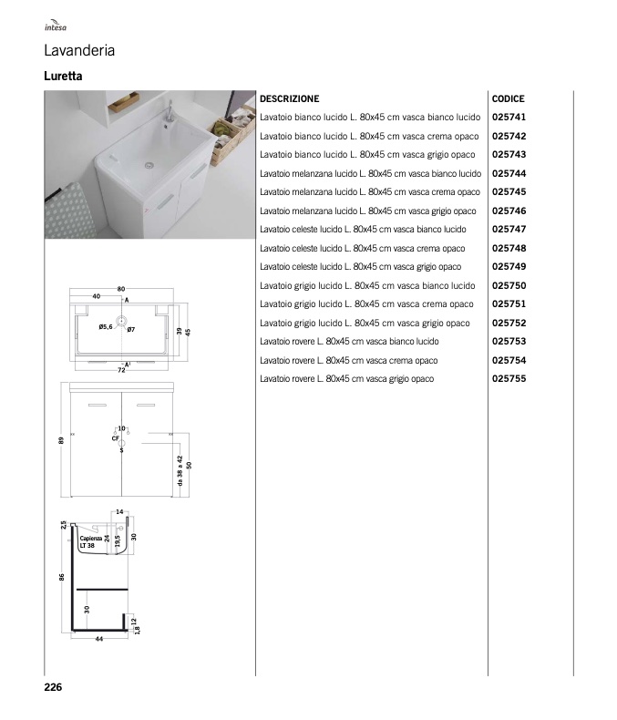 Lavatoio bianco lucido L. 80x45 cm vasca crema opaco
