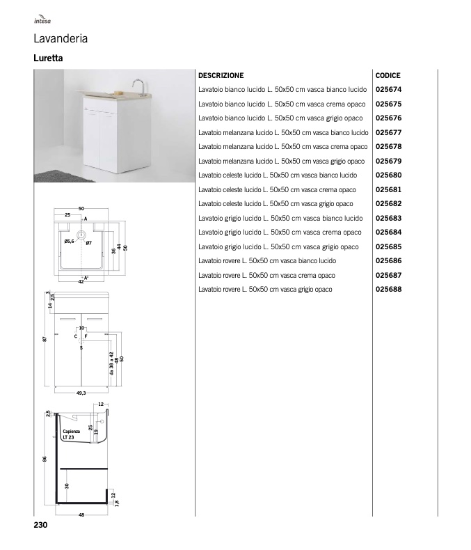 Lavatoio bianco lucido L. 50x50 cm vasca crema opaco